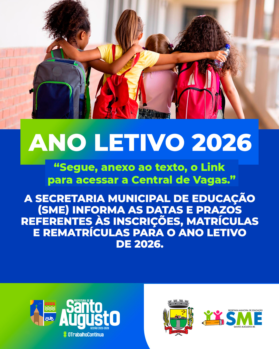 👉Nos últimos 4 itens você deve acessar a Central de Vagas para a inscrição, no seguinte link: https://santoaugusto.educarweb.net.br/serv…/matricula-2026