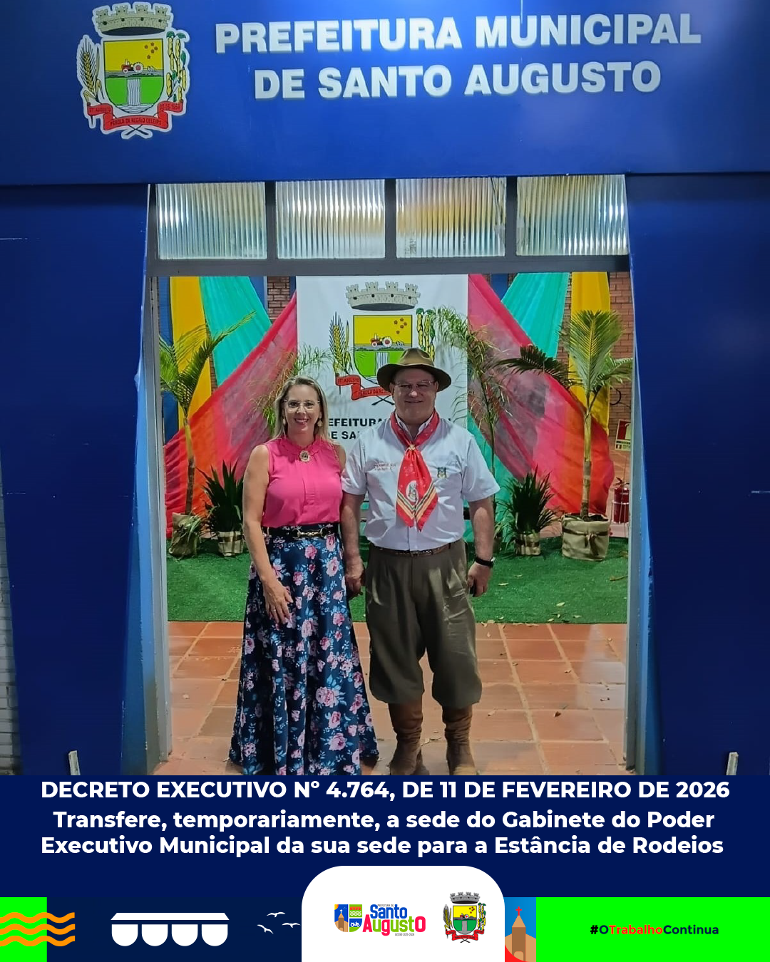 ✍️ DECRETO EXECUTIVO Nº 4.764, DE 11 DE FEVEREIRO DE 2026 Transfere, temporariamente, a sede do Gabinete do Poder Executivo Municipal.