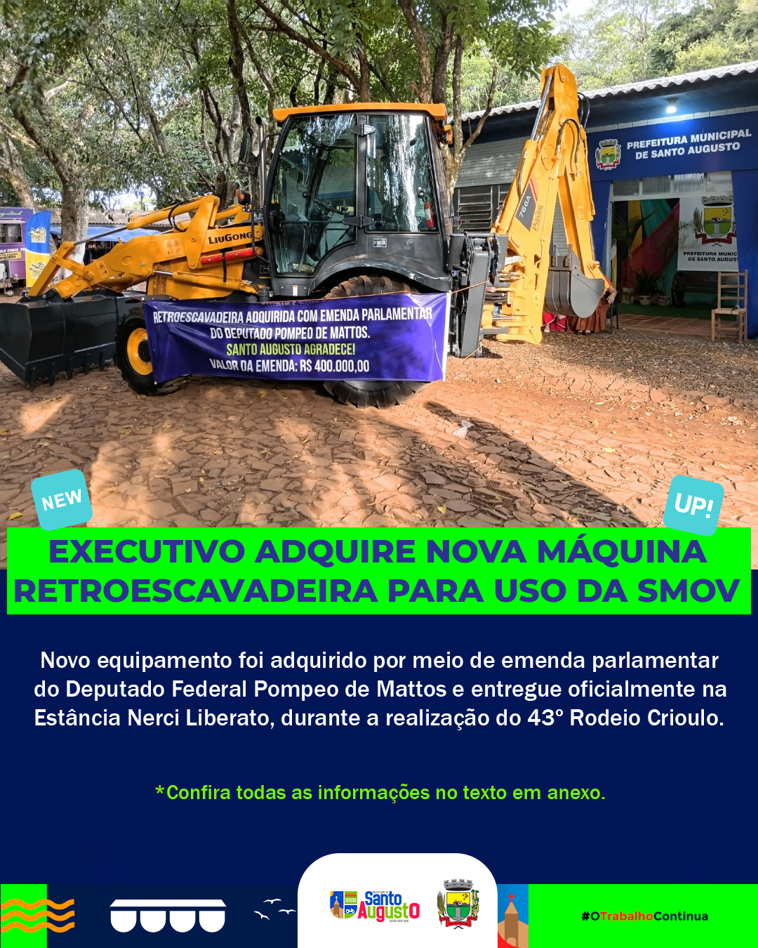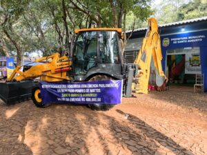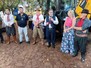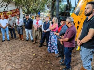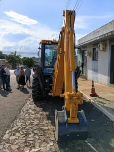 Antes disso, na tarde de terça-feira, 10 de fevereiro junto a SMOV ocorreu o recebimento da nova máquina por parte do executivo por meio da prefeita Lilian do vice Mattioni e do Secretário da SMOV Elias e equipe e com a presença de Ricardo Dalla Corte representante da empresa M. Conelli Bertinatto (M-CB) de Itajaí – SC, empresa vencedora conforme edital do pregão eletrônico nº 007/2025 e processo de licitação nº 2/2025.