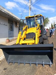 A Administração Municipal recebeu uma nova máquina Retroescavadeira, modelo 766A marca Liugong, ano 2025, motor a diesel cor amarela para uso da equipe da secretaria municipal de obras, viação e trânsito (SMOV).