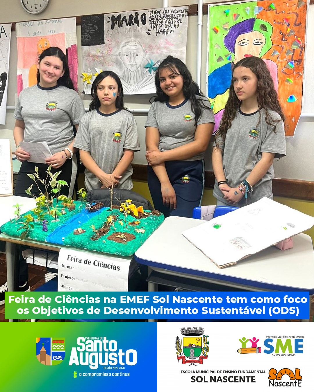 Entre os dias 08 e 12 de setembro de 2025, a Escola Municipal de Ensino Fundamental Sol Nascente realizou sua tradicional Feira de Ciências, que neste ano teve como tema central os Objetivos de Desenvolvimento Sustentável (ODS), propostos pela Organização das Nações Unidas (ONU).
