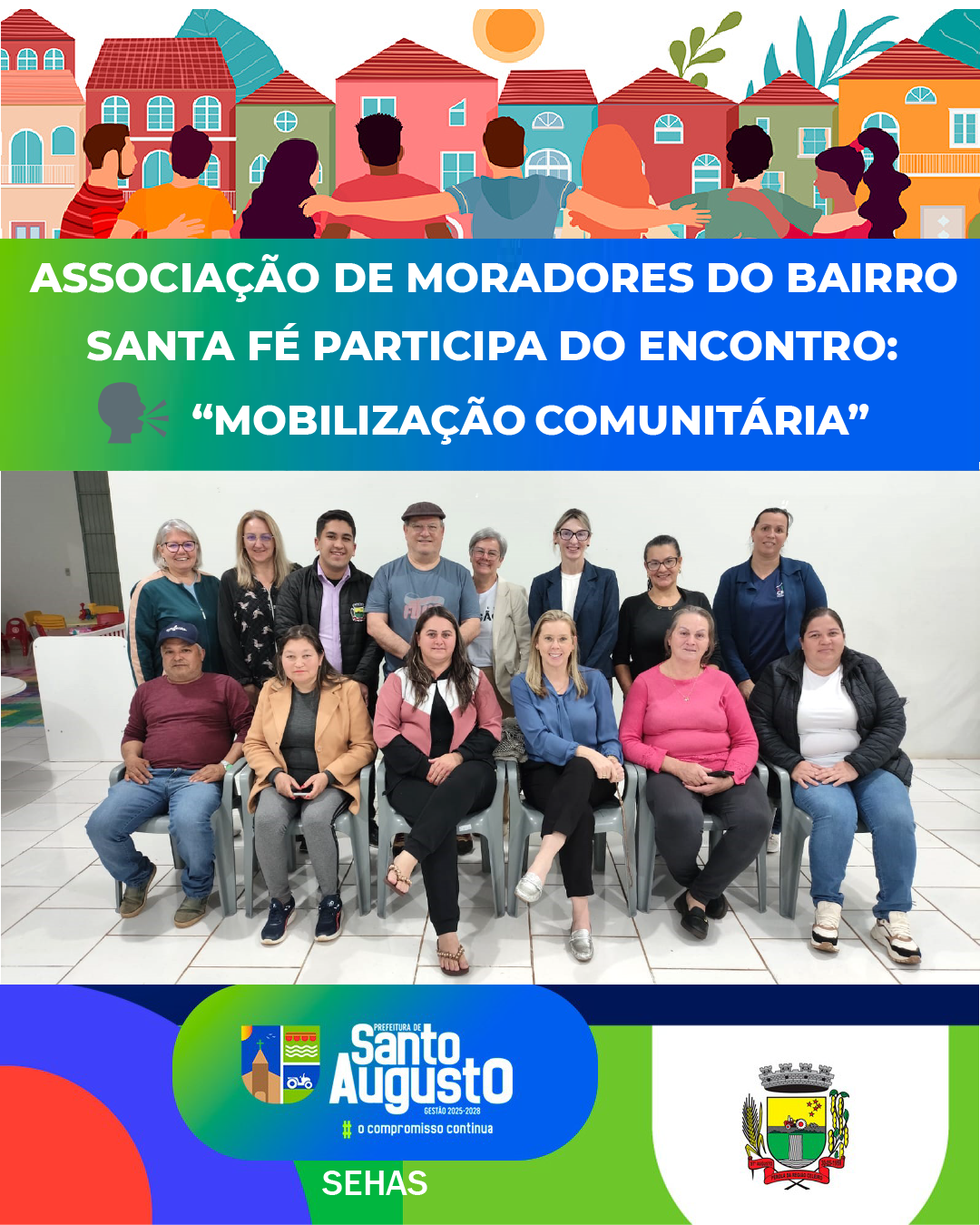 Com o objetivo de fortalecer a participação popular e dar voz às comunidades, a Administração Municipal, por meio da Secretaria de Habitação, Assistência Social e Cidadania (SEHAS), está dando continuidade à série de encontros de mobilização comunitária nos bairros de Santo Augusto. O cronograma prevê reuniões voltadas à formação ou reativação das diretorias de moradores, reforçando a importância da organização local.