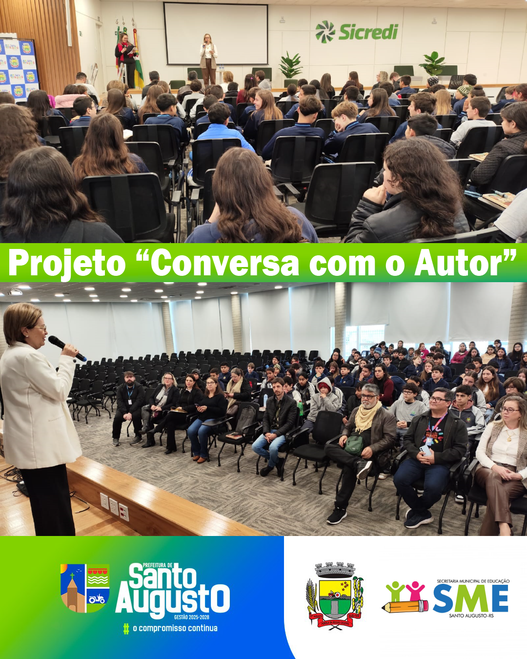 No dia 10 de julho de 2025, os alunos do 7º ano das escolas da rede municipal de Santo Augusto vivenciaram um momento literário especial no auditório Eurico Prauchner do Sicredi. O encontro fez parte do projeto “Conversa com o Autor” e contou com a presença do escritor gaúcho Samir Machado de Machado, autor do livro Piratas à Vista.
