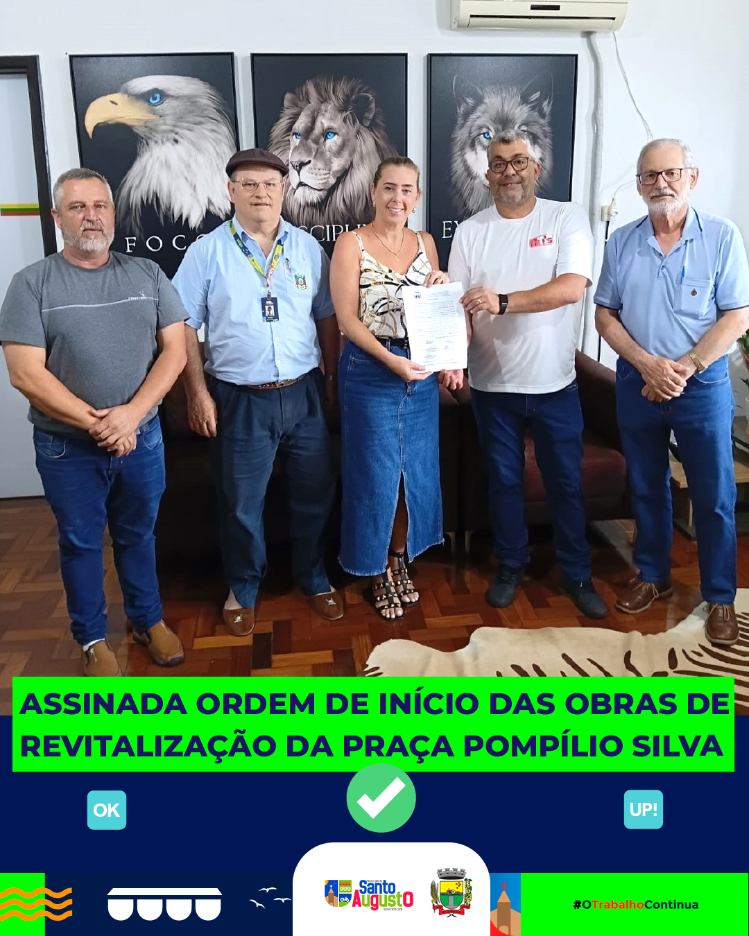 Na tarde desta terça-feira, 24 de fevereiro de 2026, foi assinada, no gabinete municipal, a Ordem de Início das obras de revitalização da Praça Municipal Pompílio Silva, um dos principais cartões-postais de Santo Augusto e espaço tradicional de convivência da comunidade.