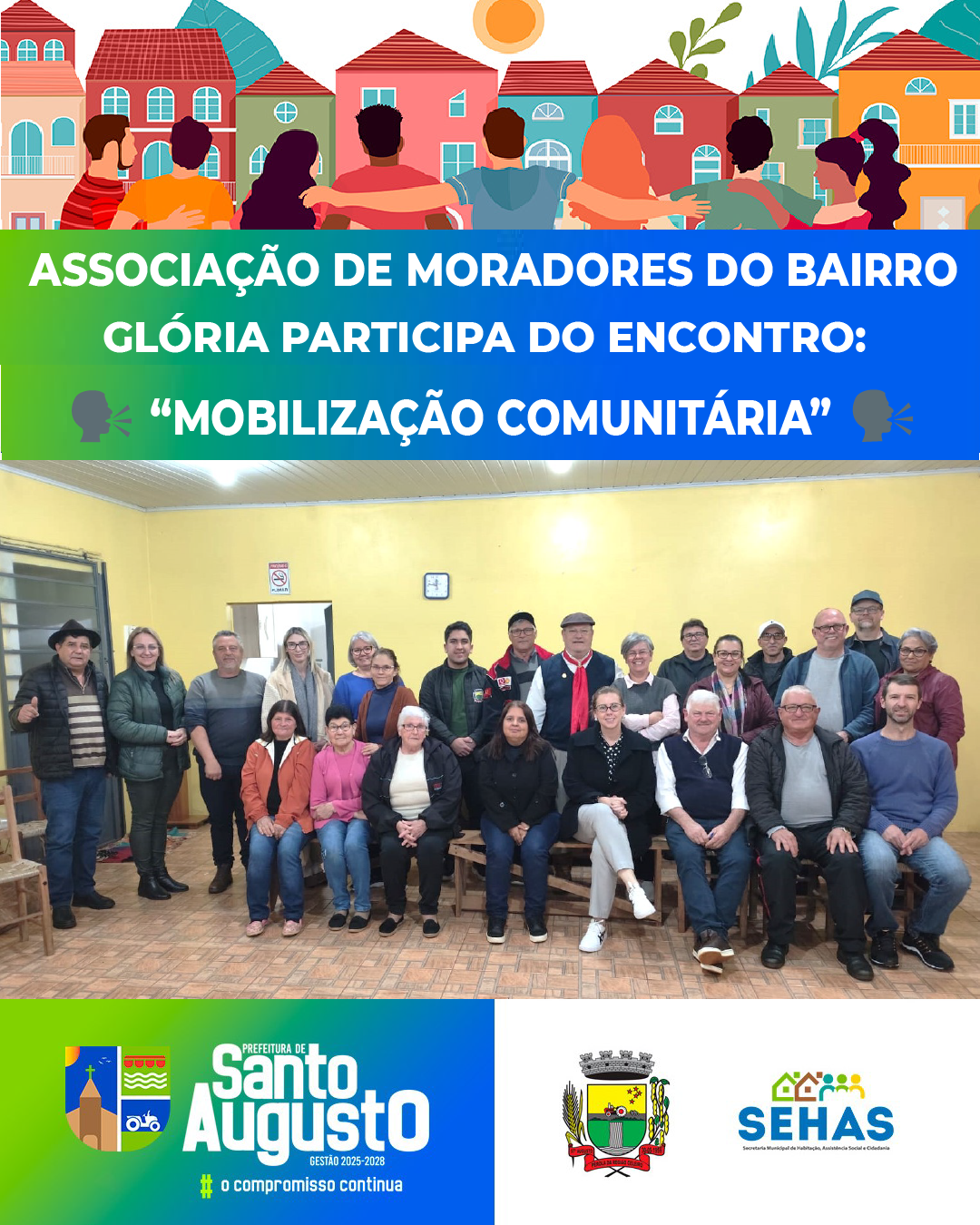 Com o objetivo de fortalecer a participação popular e dar voz às comunidades, a Administração Municipal, por meio da Secretaria de Habitação, Assistência Social e Cidadania (SEHAS), está dando continuidade à série de encontros de mobilização comunitária nos bairros de Santo Augusto. O cronograma prevê reuniões voltadas à formação ou reativação das diretorias de moradores, reforçando a importância da organização local.