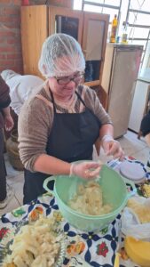 Em parceria com a Emater, foi realizada uma oficina prática de produção de pão de queijo de mandioca — alimento cultivado pelas próprias mulheres da comunidade. Mais do que uma atividade culinária, a oficina simbolizou a preservação do saber tradicional e o fortalecimento da identidade rural feminina.
