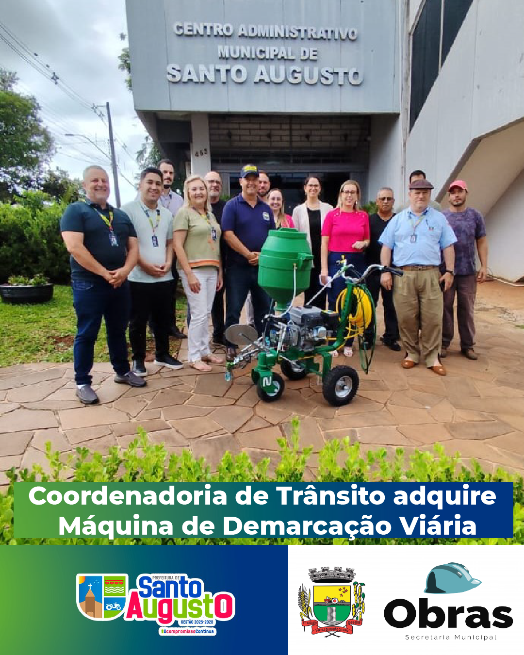 O Executivo Municipal, por meio da Secretaria de Obras, Viação e Trânsito, via Coordenadoria de Trânsito, adquiriu e realizou, na tarde desta terça-feira, 23 de dezembro de 2025, em frente ao prédio do Centro Administrativo Municipal, a entrega oficial de uma nova máquina de demarcação viária Airless, que irá agilizar os trabalhos de pintura de meio-fio, eixo central, faixas de pedestres e lombadas.