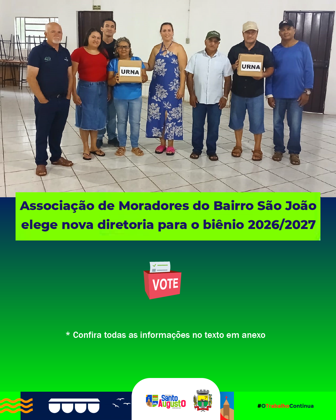 Com a realização desta eleição, o Bairro São João se soma aos outros 10 bairros do município que realizaram seus processos eleitorais no último ano, fortalecendo a organização comunitária.
