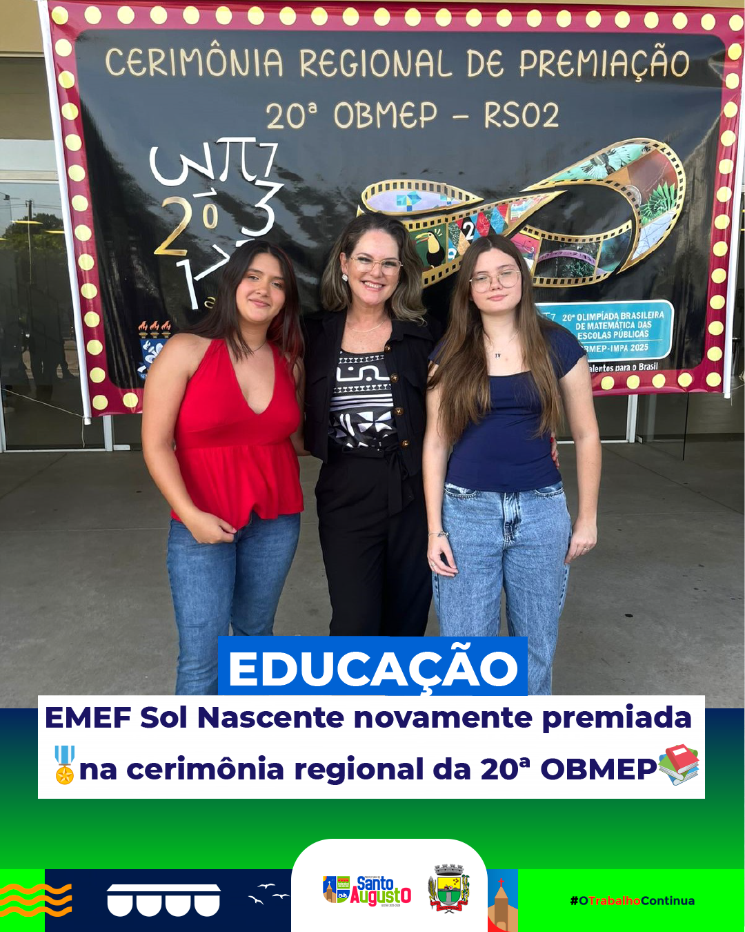 A Administração Municipal, por meio da Secretaria Municipal de Educação, parabeniza os estudantes premiados, bem como a direção, professores e toda a comunidade escolar da EMEF Sol Nascente, que mais uma vez leva o nome de Santo Augusto a um importante reconhecimento na área da educação. 👏📖