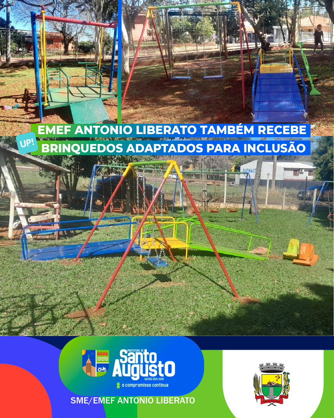 A Secretaria Municipal de Educação (SME) informa que, assim como a EMEF Rui Barbosa, de São Valentim, a EMEF Antonio Liberato, localizada no bairro Santa Fé, também recebeu nesta semana um conjunto de brinquedos especiais voltados à inclusão de crianças com diferentes necessidades.