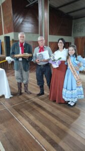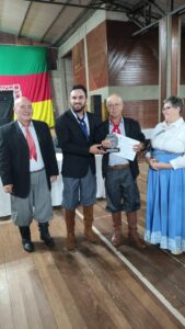 Ambos receberam a tradicional Comenda Italvino Sperotto, entregue pelos patrões Valdez Krampe e Renato Ferreira Alves, em reconhecimento aos notáveis serviços prestados em prol da cultura gaúcha no município de Santo Augusto. O homenageado esteve representado pela sua filha Ionara Sperotto.