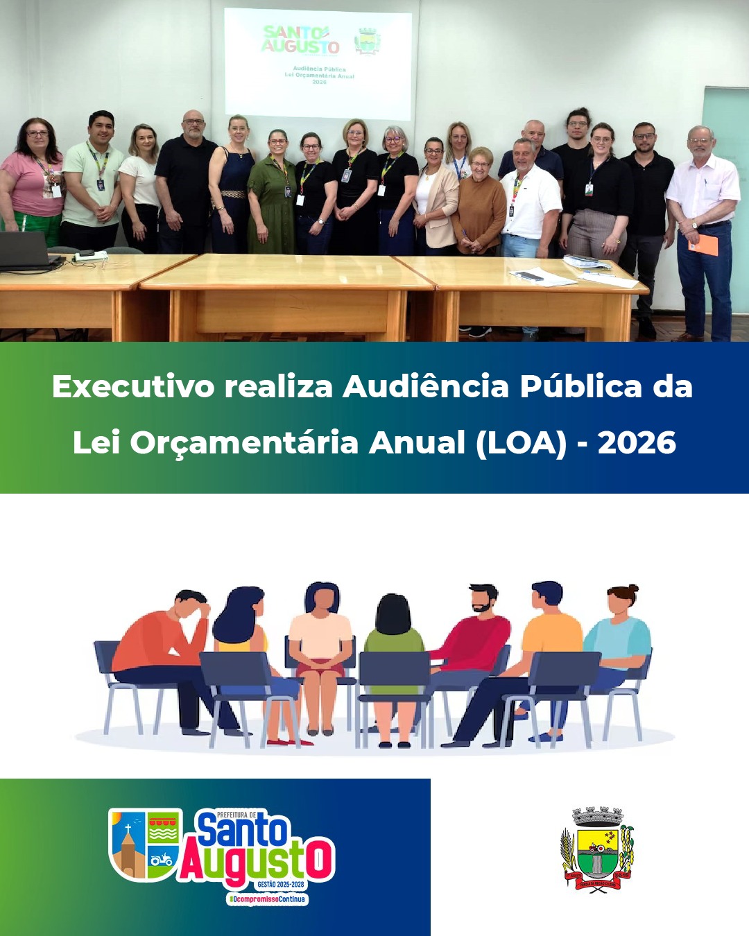 Por meio de Edital de Convocação, foram convidadas autoridades, instituições, entidades representativas, membros dos conselhos municipais, a comunidade santo-augustense e demais interessados, reforçando o compromisso da Administração com a transparência, a participação popular e a gestão democrática.