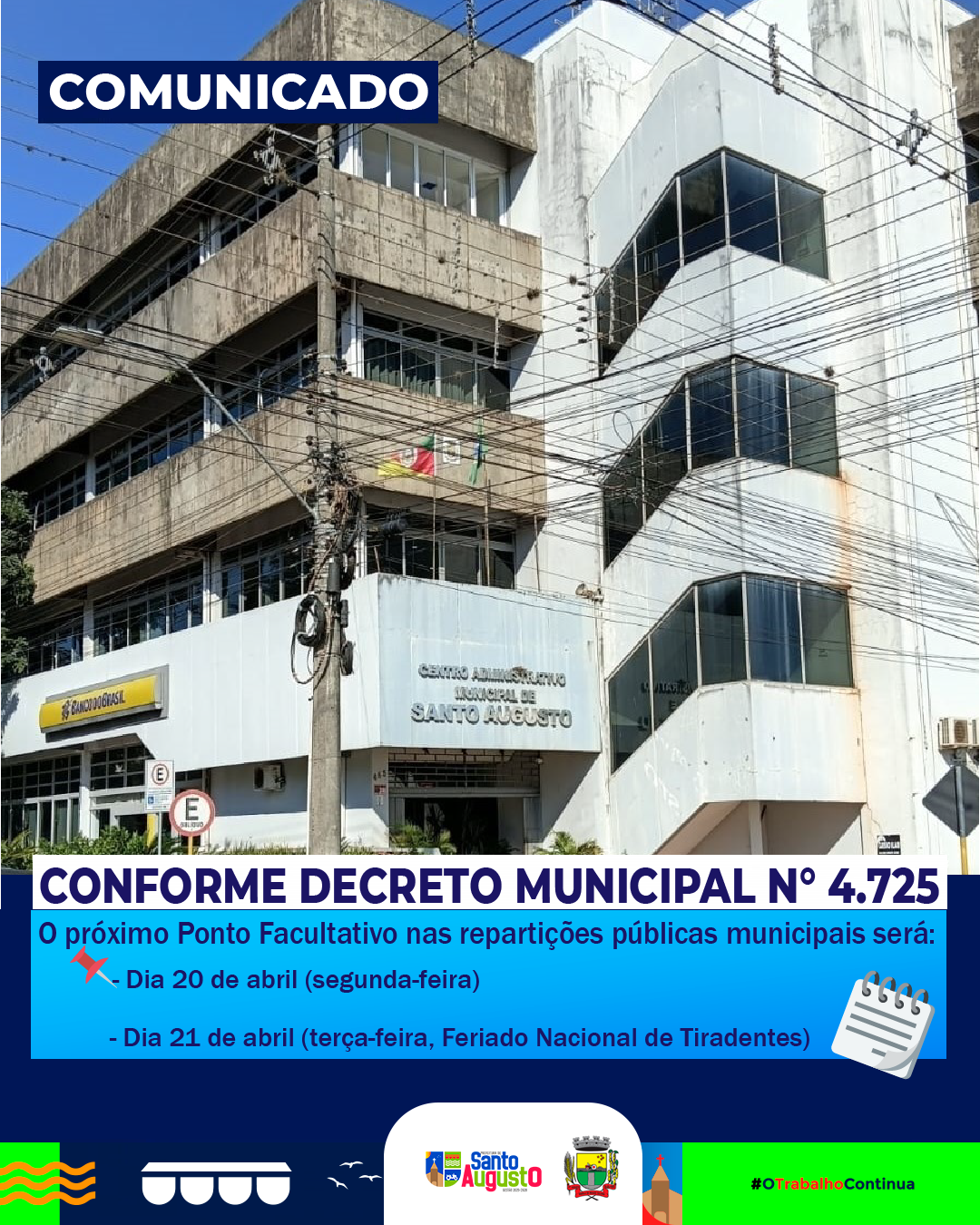 Ponto Facultativo na segunda-feira, 20 de abril