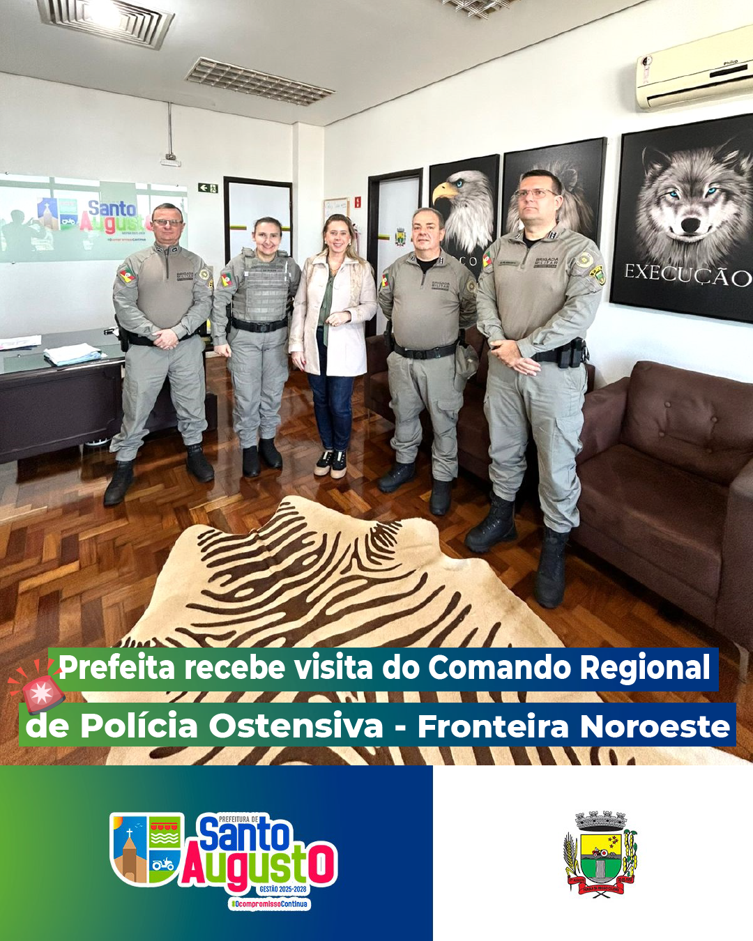 Na quinta-feira, 14 de agosto de 2025, a prefeita Lilian Fontoura Depiere recebeu, em seu gabinete, a visita do comando do CRPO Fronteira Noroeste.
