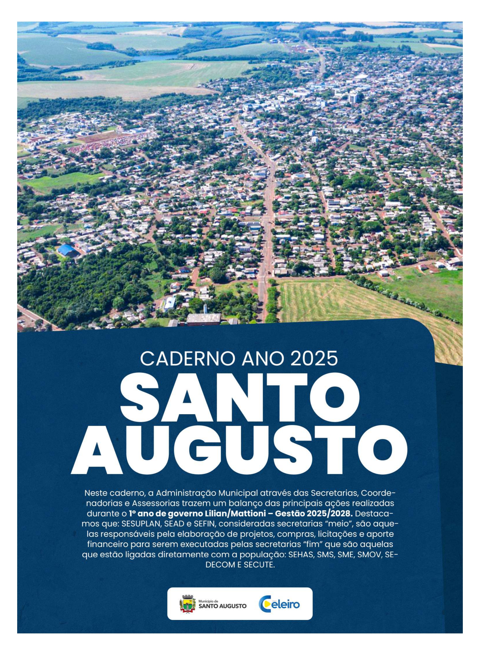 Confira o 📰 Caderno de Santo Augusto, inserido na edição de 09 de janeiro de 2025 do Jornal O Celeiro, que apresenta um levantamento das principais ações desenvolvidas pela Administração Lilian/Mattioni, juntamente com as nove secretarias municipais, durante o primeiro ano de 2025 da gestão 2025/2028. ✅