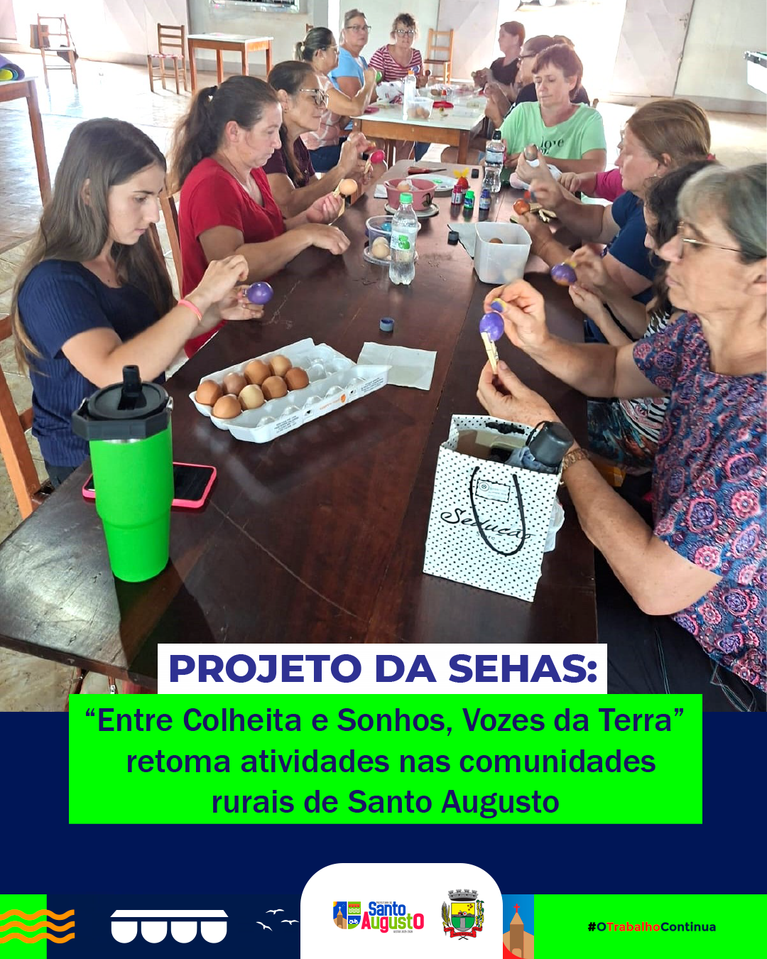 Seguindo as ações realizadas em 2025, a Secretaria Municipal de Habitação, Assistência Social e Cidadania (SEHAS), em parceria com a Emater/RS-Ascar, realizou o primeiro encontro de 2026 do projeto “Entre Colheita e Sonhos, Vozes da Terra”, voltado às mulheres do meio rural de Santo Augusto.