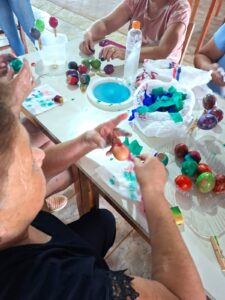 Além do espaço de conversa e reflexão, o encontro contou com uma atividade prática de aprendizado: a confecção de casquinhas para a Páscoa, proporcionando troca de conhecimentos, criatividade e integração entre as participantes.