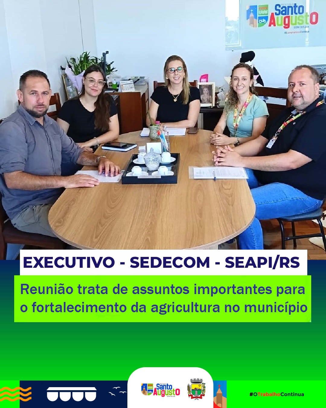 A reunião também serviu para alinhar outras demandas relacionadas ao desenvolvimento do setor agropecuário local. Novos encontros deverão ser realizados nos próximos dias, com o objetivo de avançar nas definições e fortalecer a parceria entre Estado e Município, contribuindo para o crescimento e a valorização da agricultura em Santo Augusto.