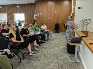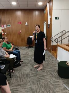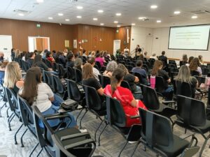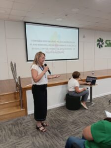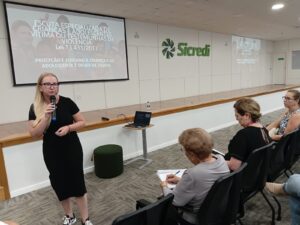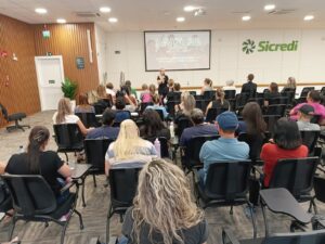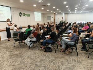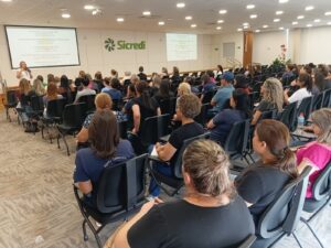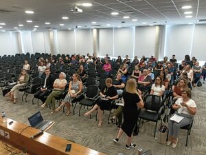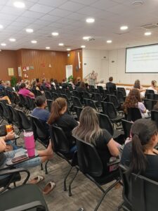 Com o tema “Escuta Especializada”, o encontro contou com a palestra da assistente social Roselaine Klaus Camatti, que abordou as melhores práticas e destacou a importância de um acolhimento humanizado, técnico e qualificado às crianças e adolescentes em situação de violência.