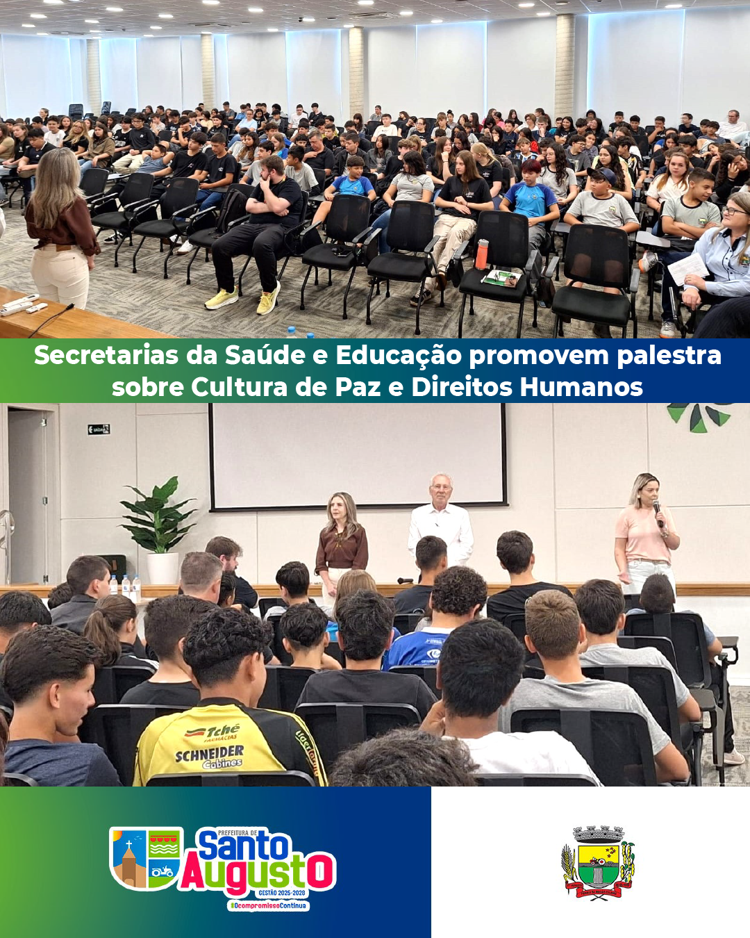 A Administração Municipal, por meio da Secretaria da Saúde (SMS) e da Secretaria de Educação (SME), realizou na manhã desta quarta-feira, 26 de novembro de 2025, uma roda de conversa no Auditório Eurico Prauchner do Sicredi, com a participação de alunos do 7º ao 9º ano das escolas da rede municipal de Santo Augusto.