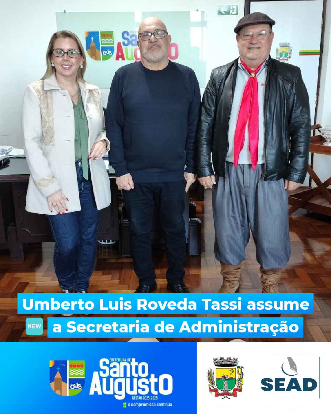 A Administração Municipal informa que Umberto Luis Roveda Tassi, que até então exercia a função de Diretor da Divisão de Recursos Humanos (DRH) da Secretaria Municipal de Administração (SEAD), passa a ocupar o cargo de Secretário da pasta, conforme Portaria nº 28.952, matrícula nº 1713-04.